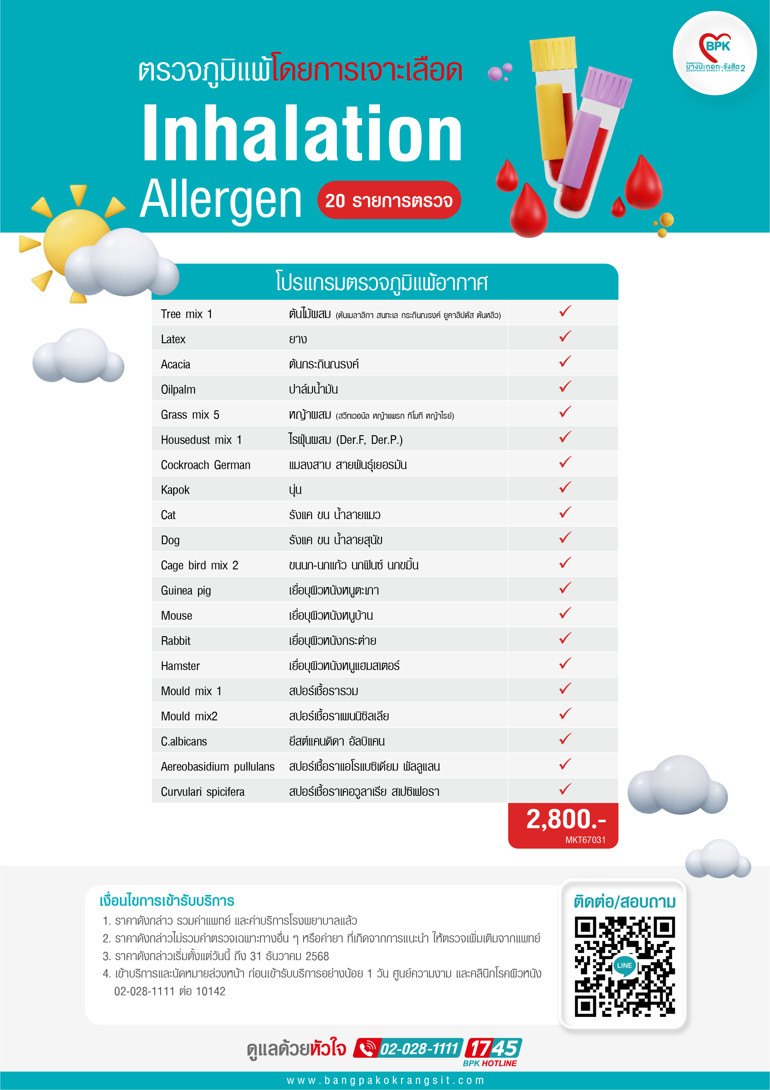 ตรวจภูมิแพ้ผิวหนังและแพ้อาหาร 45 รายการ ด้วยวิธีเจาะเลือด (Inhalation & Food Allergen) ที่ โรงพยาบาลบางปะกอก-รังสิต2