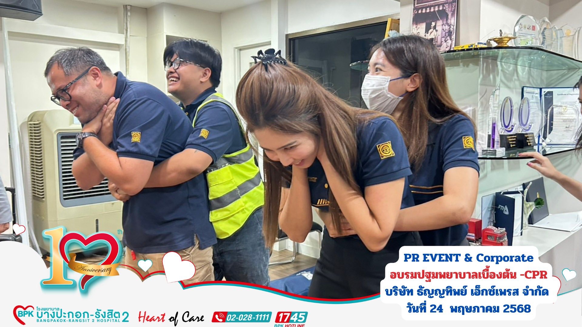 วันที่ 24 พฤษภาคม 2568 โรงพยาบาลบางปะกอก-รังสิต จัดจัดอบรมสอน CPR การโช้คกิ้ง และปฐมพยาบาลเบื้องต้น ให้กับ บริษัท ธัญญทิพย์ เอ็กซ์เพรส จำกัด โดยกิจกรรมภายในงานประกอบไปด้วย การสอบวิธีการช่วยฟื้นคืนชีพ การโช๊คกิ้ง จากอาหารติดหลอดลม อีกทั้งยัง สอนการปฐมพยาบาลเบื้องต้น ขั้นพื้นฐาน