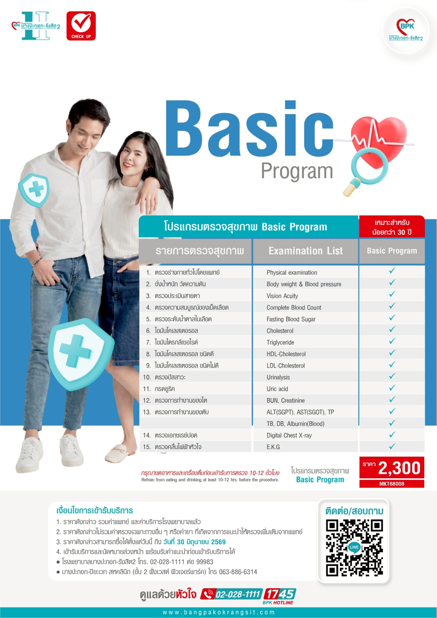 Basic Program โปรแกรมตรวจสุขภาพ อายุน้อยกว่า 30 ปี