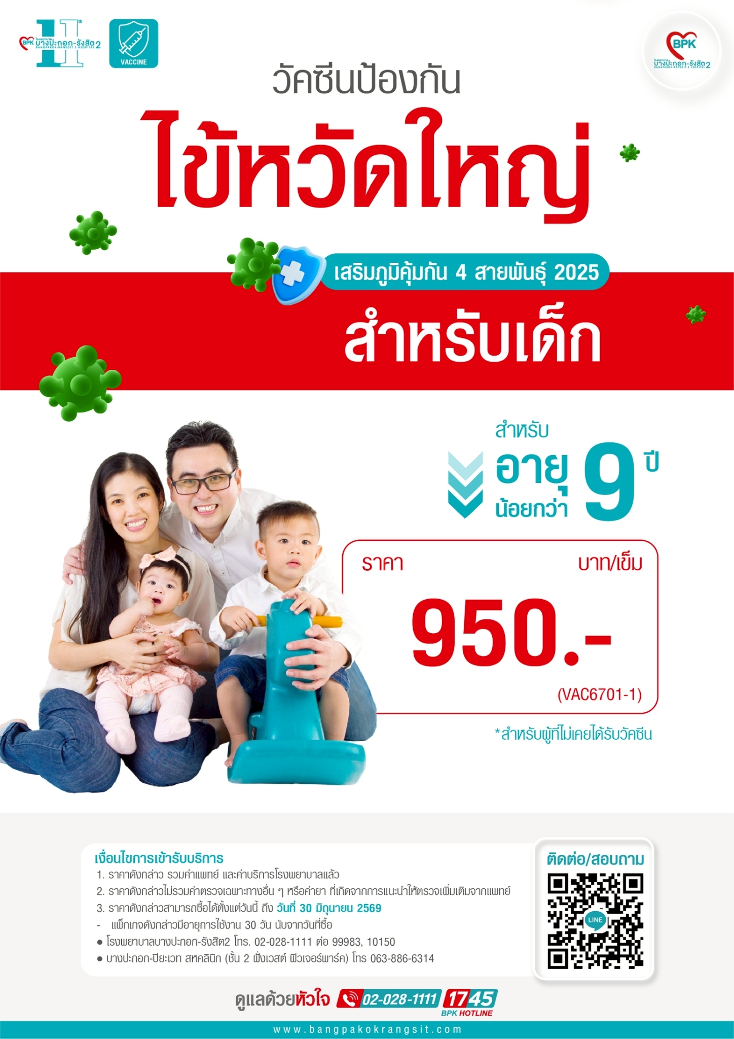 วัคซีนไข้หวัดใหญ่ (สำหรับเด็ก) เสริมภูมิคุ้มกัน 4 สายพันธุ์ 2025