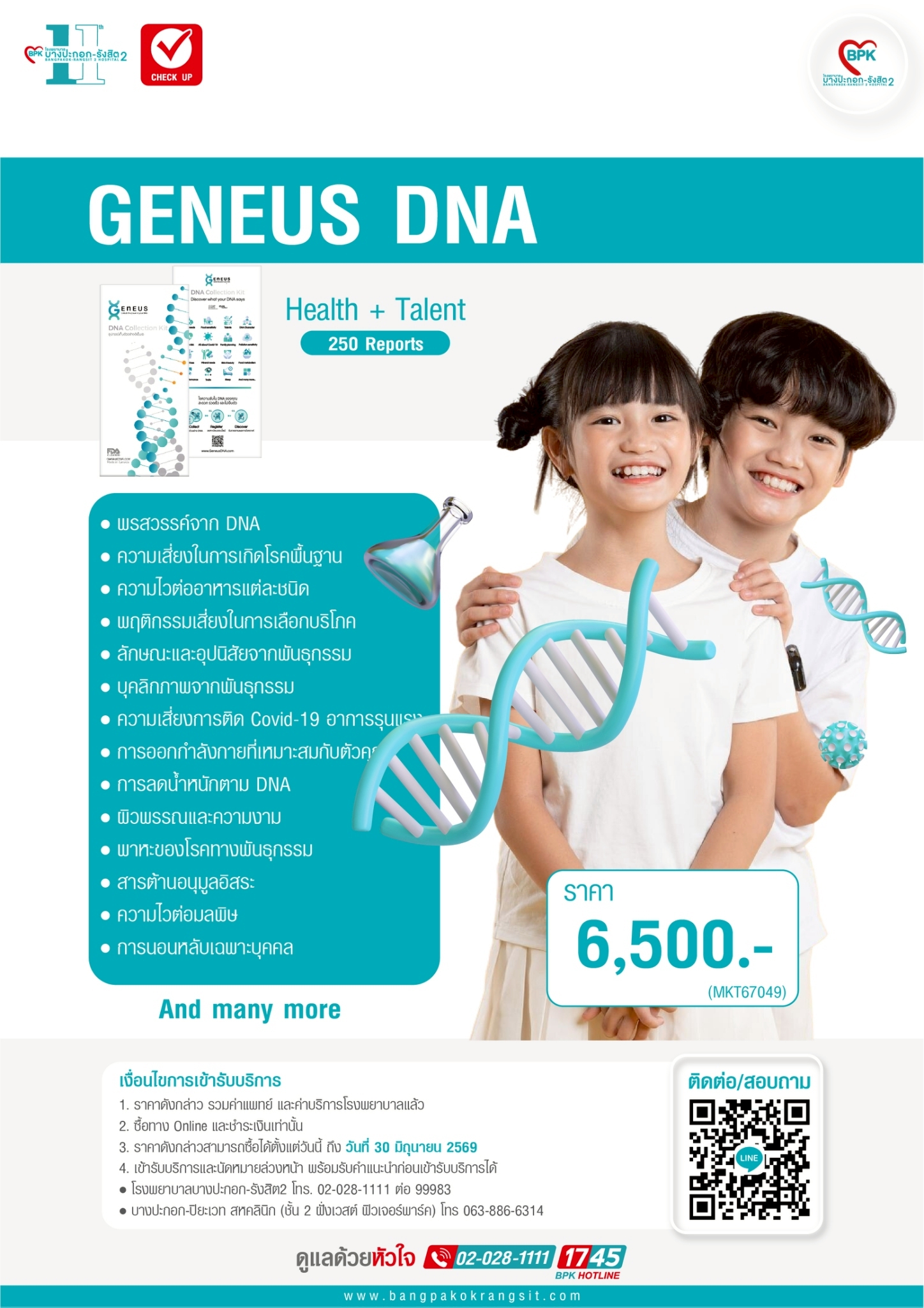 โปรแกรมตรวจ Geneus DNA Talent 250 Reports - ที่โรงพยาบาลบางปะกอก รังสิต 2