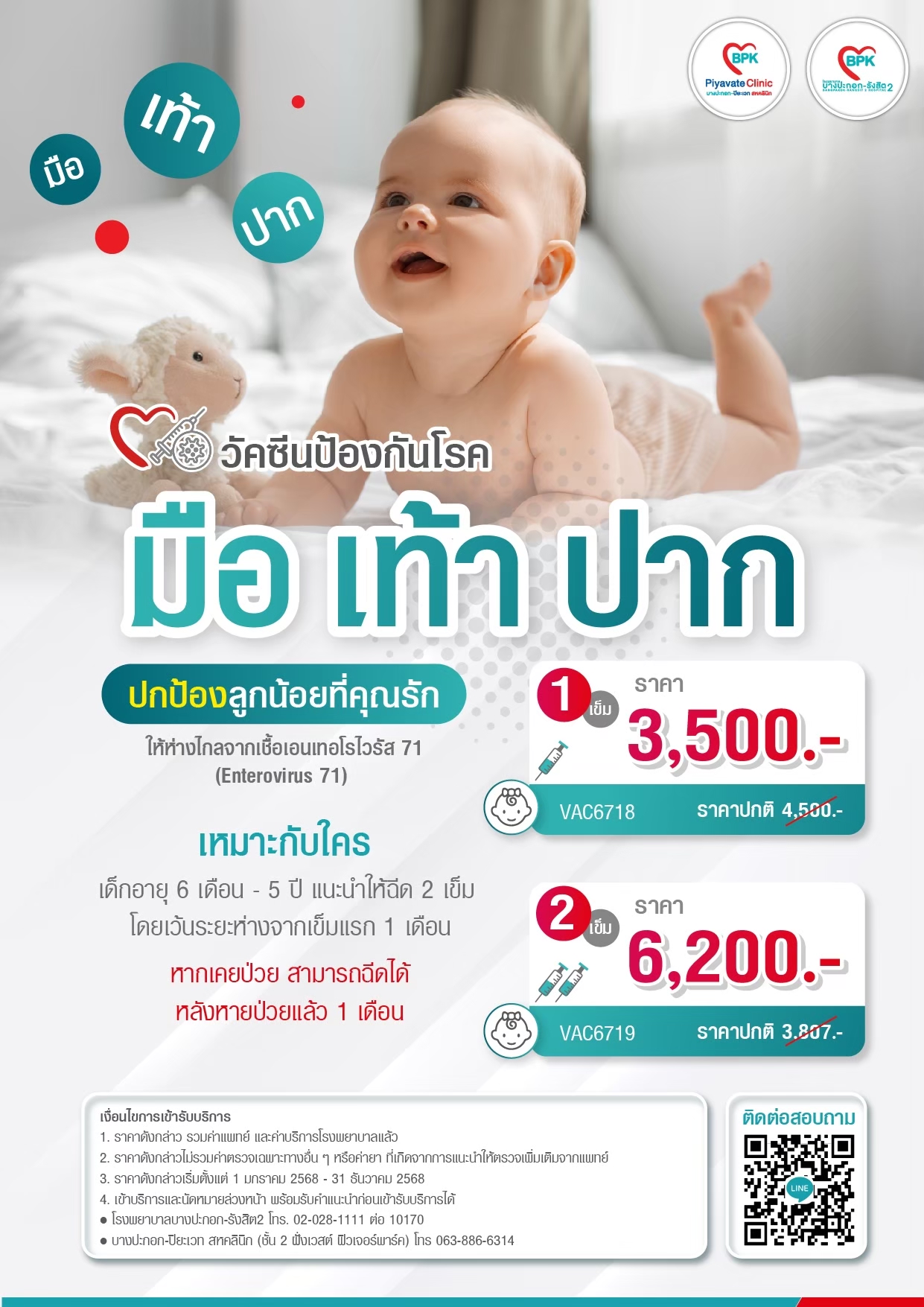 วัคซีนป้องกันมือ เท้า ปาก ( 1เข็ม ) - โรงพยาบาลบางปะกอก รังสิต 2